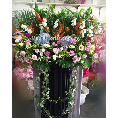 Flowers that are included in this condolences flowers are: roses, daisy, hydrangea, heliconia, golden ginger torch, and orchid with flowers.