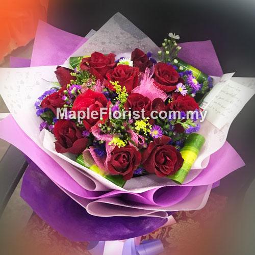 情人节玫瑰花束送女友送情人最佳礼物,价格优惠,鲜花品种齐全,递送服务范围,柔佛新山及全马来西亚。